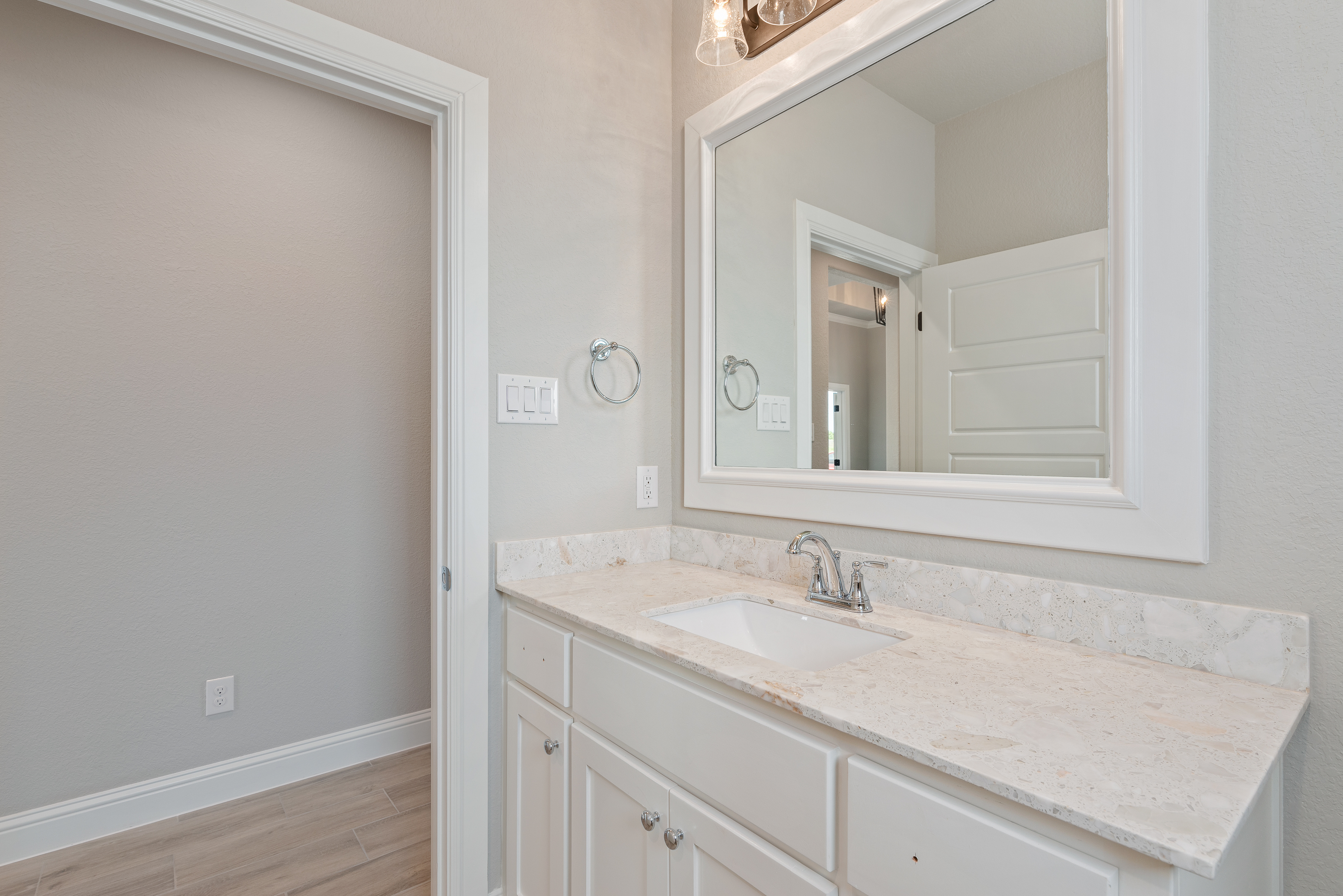 Another lovely offering by Remington Homes on a large lot in highly desired Meander Estates just north of town in Granbury with easy access to Highway 377. Nothing cookie-cutter about the gorgeous Craftsman-style curb appeal with exposed front porch beams. Elevated interior finishes include wood-look tile flooring, custom tile selections, high baseboards, crown molding, & designer lighting. Boasting intelligent layout features like a walk-through laundry room that connects to the master suite and a fabulous walk-in pantry. Enjoy front or back porch sitting, or take a walk to the neighborhood park and private pond. Close to HEB and town square. A custom home at an accessible price. Estimated completion Mar 2020